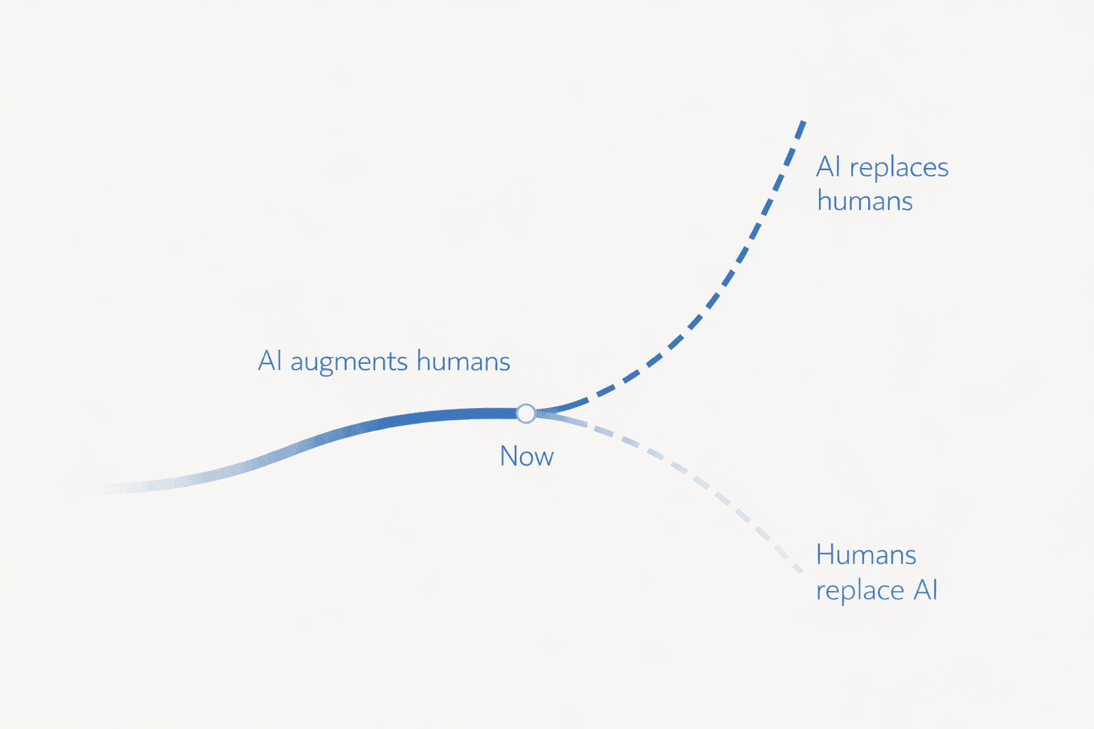 Right now there is a fierce argument about whether AI will "replace" us or not.