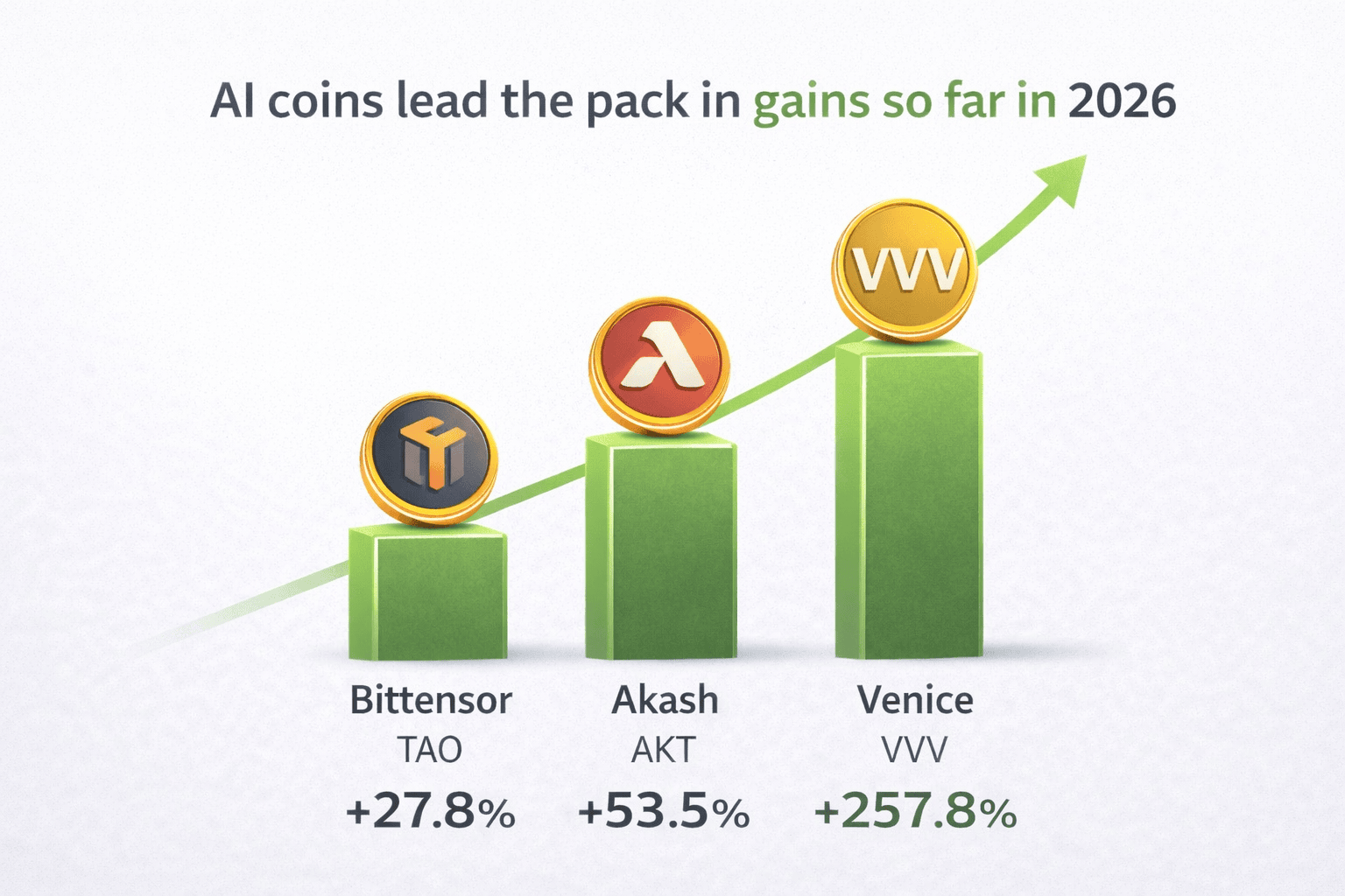 That growth is continuing as many AI coins lead the pack in gains so far in 2026.